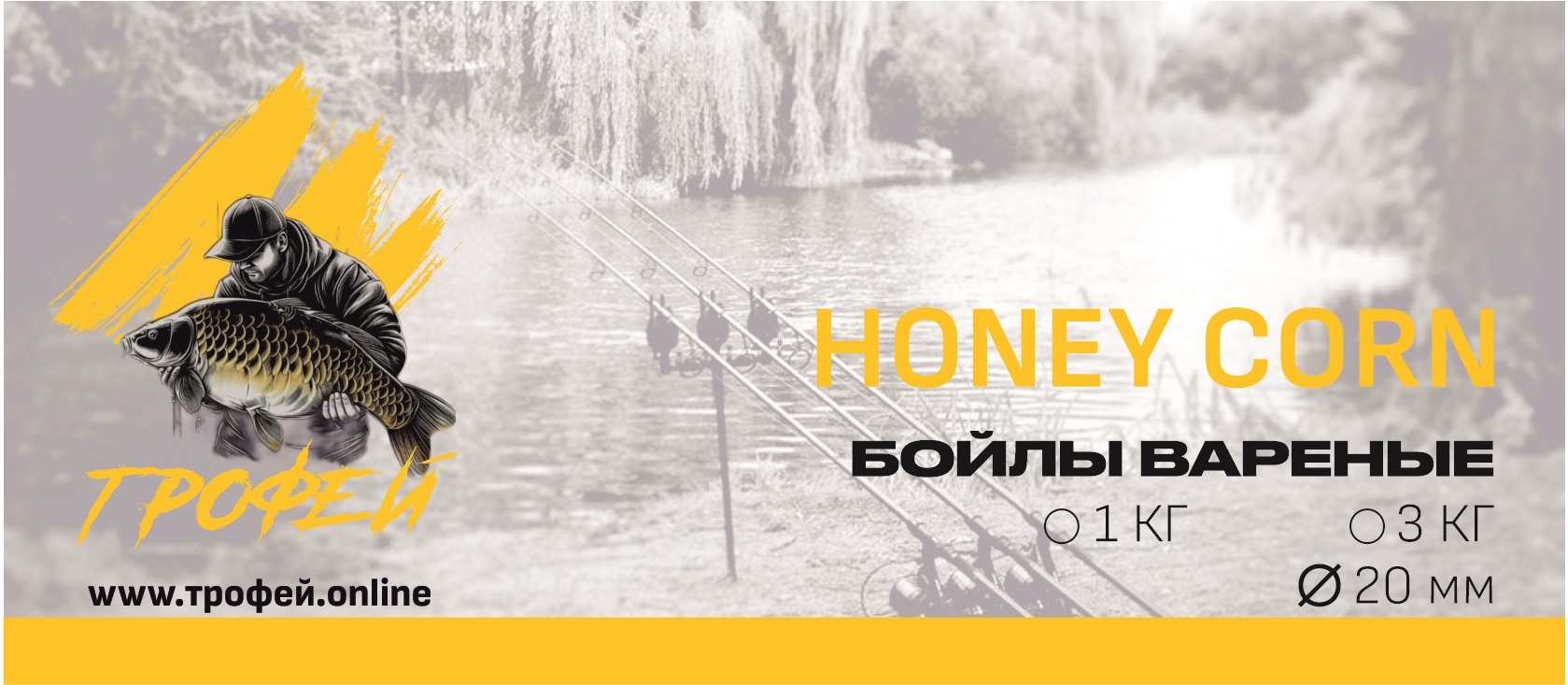 Аромат: насыщенный, сладкий запах мёда в сочетании с тёплым кукурузным оттенком. Создаёт устойчивый ароматический шлейф, привлекающий рыбу с дальних дистанций.