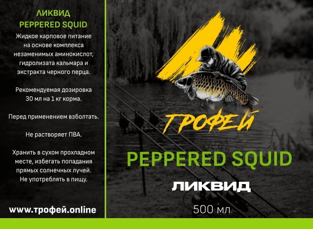 Ликвид Peppered Squid — специализированная жидкая добавка для рыбалки с комплексным ароматом кальмара, приправленного острыми перцами. Создана для привлечения карпа, когда требуются интенсивные, нестандартные стимулы. Основные характеристики: