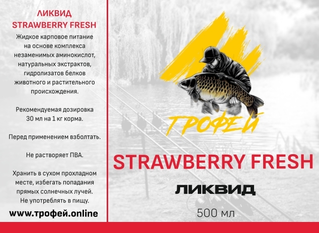 Ликвид Strawberry Fresh— ароматизированная жидкая добавка со вкусом свежеприготовленного клубничного фреша. Предназначена для усиления привлекательности рыболовных приманок и прикормок, особенно эффективна в тёплое время года. Основные характеристики: