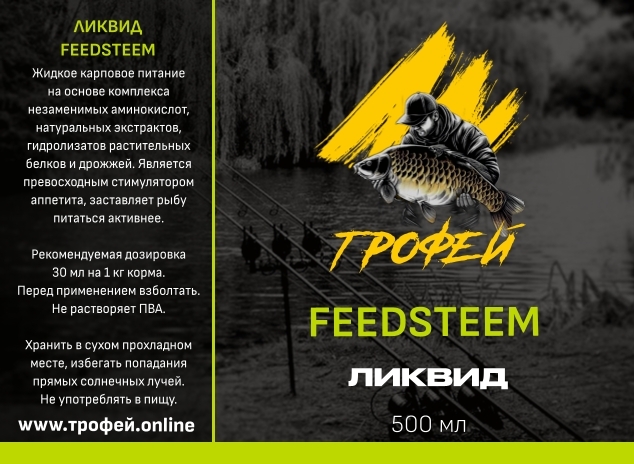 Feedsteem — высококонцентрированный жидкий аттрактант для рыбалки, разработанный для стимуляции аппетита и активизации питания рыбы в зоне ловли. Относится к категории «пищевых стимуляторов», усиливает привлекательность приманок и прикормок за счёт комплекса аминокислот, натуральных экстрактов и высокопитательных компонентов. Основные характеристики: