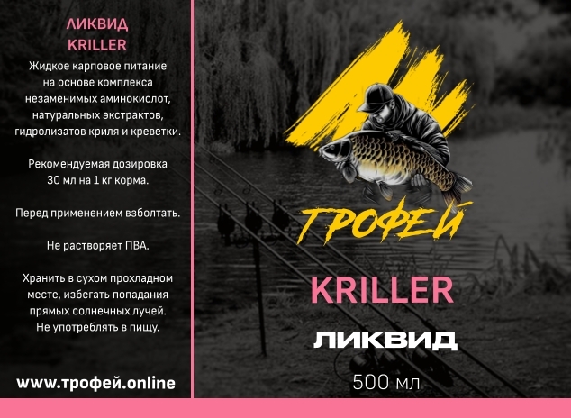 Ликвид Kriller — специализированная жидкая добавка для рыбалки на основе экстрактов криля. Предназначена для привлечения карпа в прохладной воде. Основные характеристики: